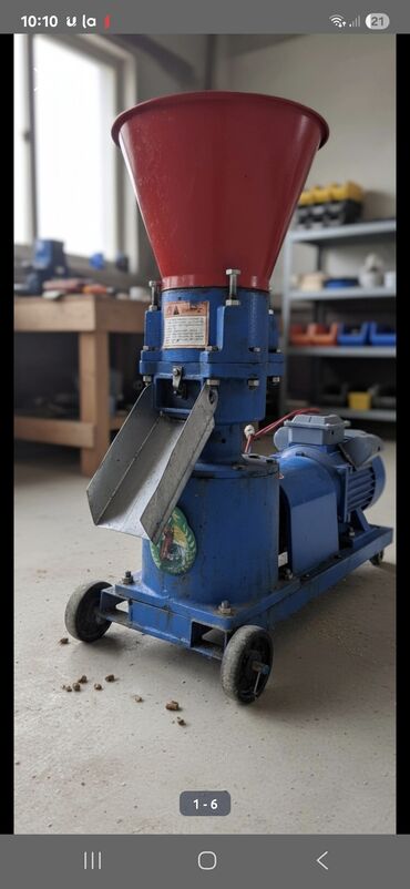 Qeyd: Şəkillərdə göstərilən qurğu komplektdə bunker, pres bloku, matris-rulon sistemi, iki çıxış novu, elektrik mühərriki və şassi üzərində təkərlərlə təqdim olunur.