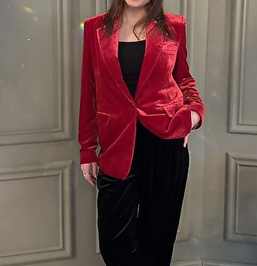 MANGO markası, pencək, S ölçü. Parça materialı: kadife (məxməri) blazer. Endirimlə 87 Aznə alınıb, Cəmi bir dəfə dress codu qırmızı olan tədbirə geyilib. Sumqayıtdadır. Expargo ilə istənilən şəhər və rayona göndərmək olar.