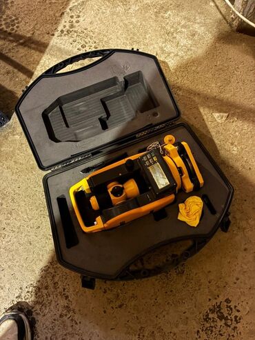Peşəkar optik/səviyyələmə cihazı – üçayaq üzərində istifadə olunan, torpaq ölçmə və tikinti işləri üçün nəzərdə tutulmuş sarı rəngli total stansiya/teodolit tipli cihaz.