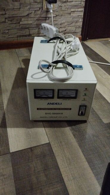 - Stabilizator: ANDELI SVC‑5000VA AC Automatic Voltage Regulator. Gərginlik göstəriciləri (V/A), over/under‑voltage indikatorları və on/off açarı ilə. Avadanlığın gərginlik dalğalanmalarından qorunmasına kömək edir.
