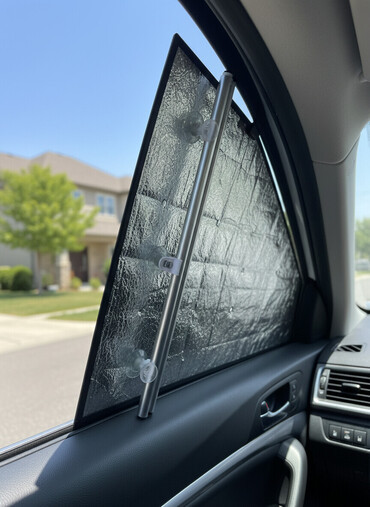 Qeyd: Şəkillərdəki kimi gümüşü (metal effekti) səth. Ölçü təxmini: eni orta pəncərə/avto şüşəsinə uyğundur.
