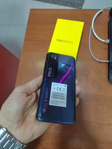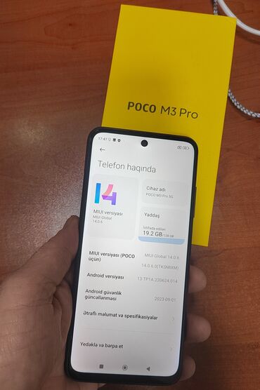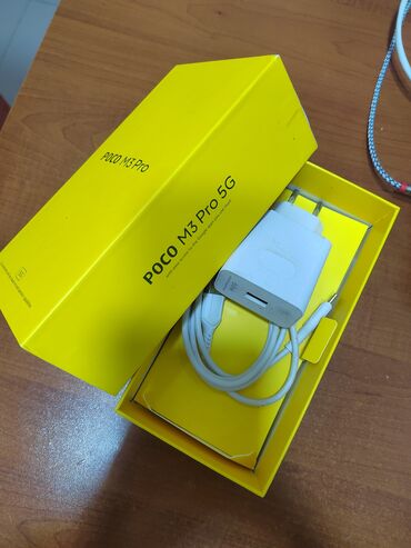 - Qutunun tərkibi: Orijinal sarı POCO M3 Pro qutusu, şarj adaptoru, USB‑C kabeli