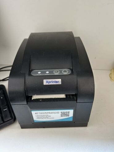 - Termal printer 1: Xprinter etiket/çek çap cihazı. Qurğu üzərində “Support 4M DRAM, 4M NV FLASH / 150 mm/s high-speed printing” qeyd olunub. Thermal transfer/thermal direct dəstəyi, USB qoşulma üçün etiket var.