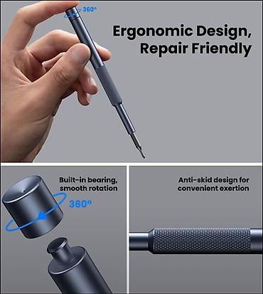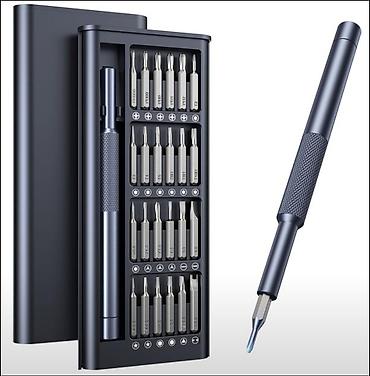 - Yüksək dəqiqlikli tornavida dəsti: müxtəlif ölçü və formalarda 24 dəyişdirilə bilən bit.