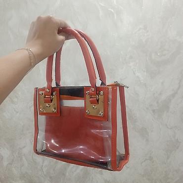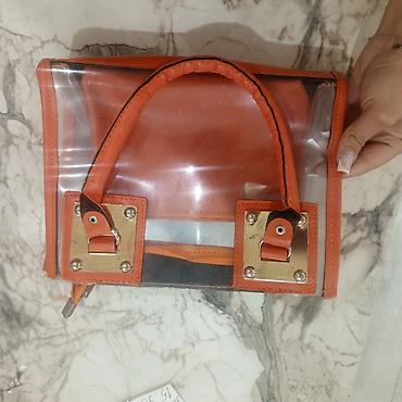 Şəffaf əl çantası – portağal rəngli daxil olan kosmetik/mini çanta ilə