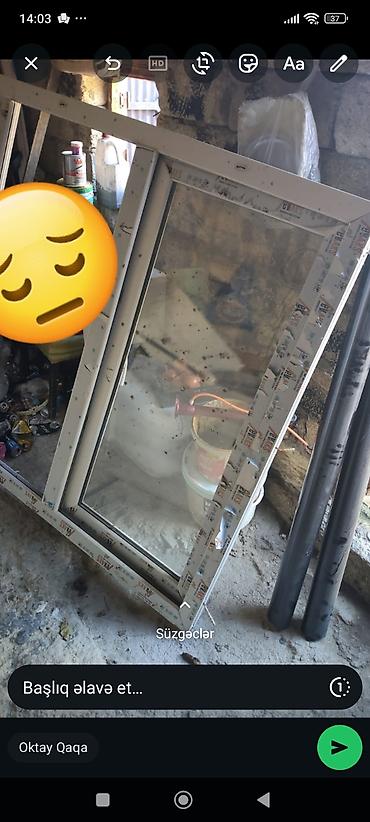 - Pəncərə: Ağ PVC profil, bir ədəd açılan taxta (dönər-açılan tip görünüşlü), şüşəli.