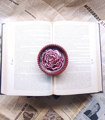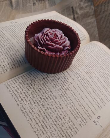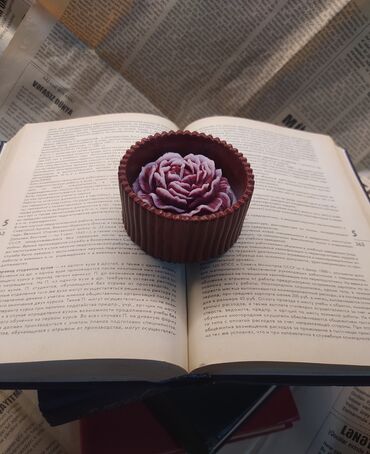 Məhsul: əl işı şam kompozisiyaları Təsvir: - Orijinal dizaynlı dekorativ şamlar: kitab dəstinə bənzər bənövşəyi rellefli şam, qızılgül naxışları və ornamentlərlə. - Çəhrayı qızılgül formasında det...
