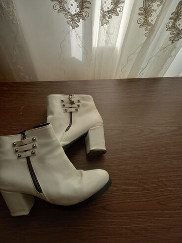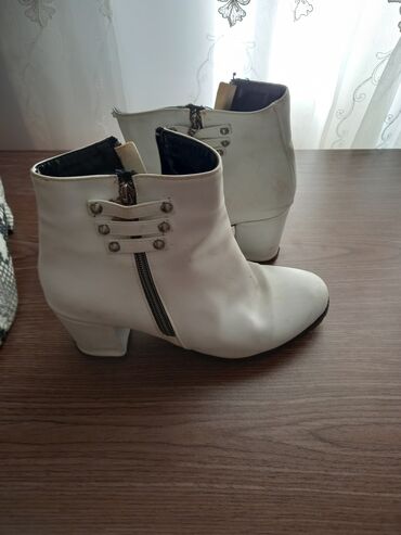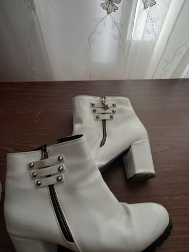 Qadın çəkmələri – ağ rəng, qara detallı - Model: qısa boğaz, qalın