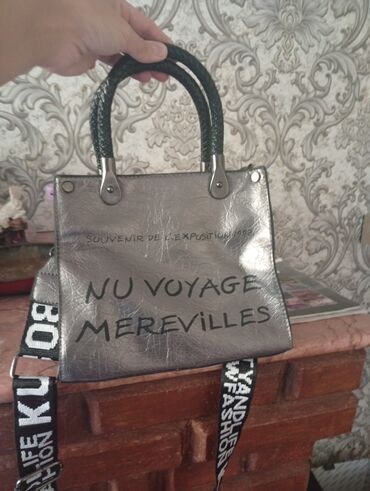 3) Gümüşü rəngli tote/şopper tipli çanta
