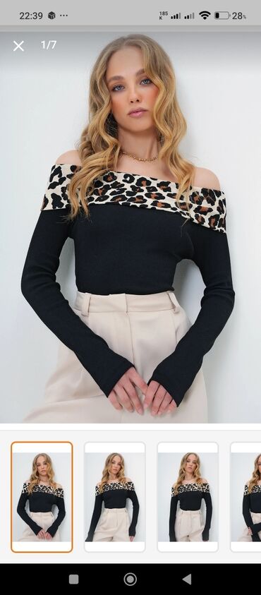 Leopard naxışlı, uzunqol qadın bluzası. Bu bluza dəri detallarla, xüsusilə yaxalıq və manjetlərdə tamamlanmışdır. Həm gündəlik, həm də daha rəsmi tədbirlər üçün uyğun olan bu bluza, müxtəlif geyiml...