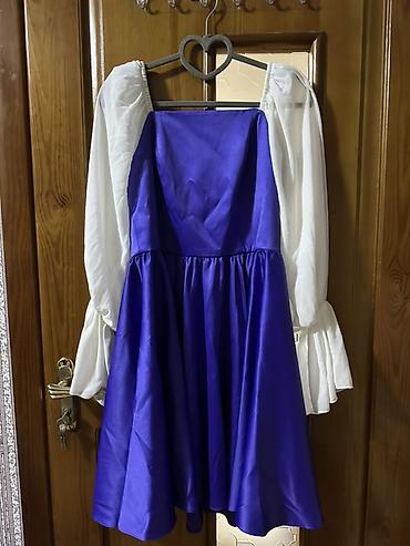 4) Bənövşəyi-ağ don – geniş ətəkli, atlas parça effektli ətək, ağ şifonvari uzun balon qol, kvadrat yaxa. Romantik və diqqətçəkən obraz yaradır.