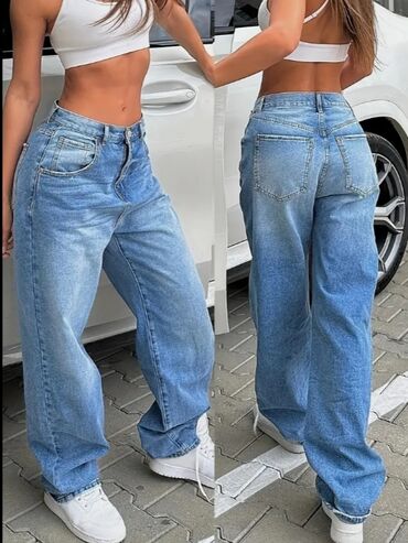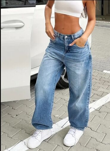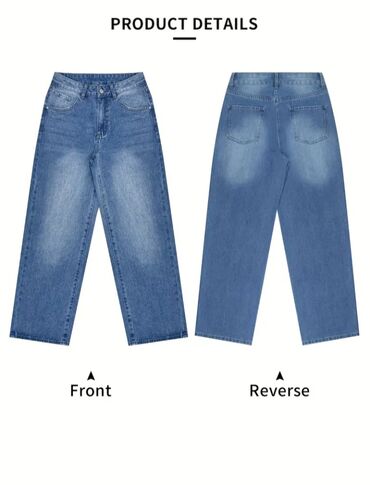 - Kəsim: Geniş paça (baggy/loose fit), rahat oturuş, düz kəsimli balaq