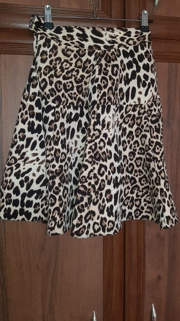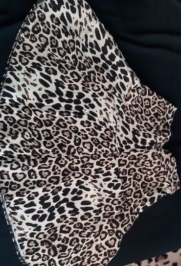 - Ətək: A-kəsim, geniş ətək ucları ilə həcimli siluet. Leopard (heyvan naxışı) printi, yüksək bel xətti. Yan tikişlərdə büzmə-panellər ətəyə hərəkətlilik verir. Parça yüngül və axıcıdır.