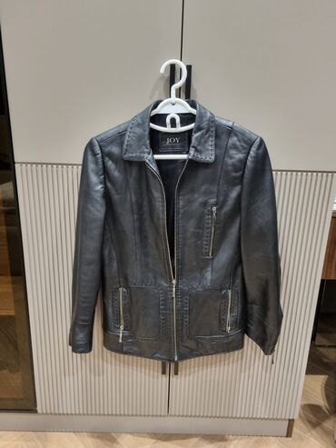 Qara dərili gödəkcə – “enter*” brendi - Model: biker stilində qısa kəsim - Rəng: parlaq qara - Beden: 36 (etiketdə) - Material: süni dərini xatırladan hamar parça, iç hissə astarlı - Yaxa: geniş, ...