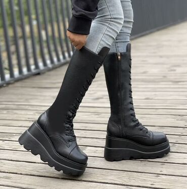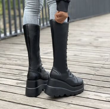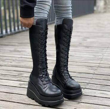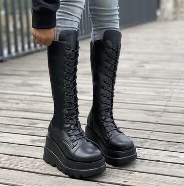 Qadın üçün dizə yaxın hündürlükdə qarışqa altlıqlı krujevli çəkmələr (10sm platform)