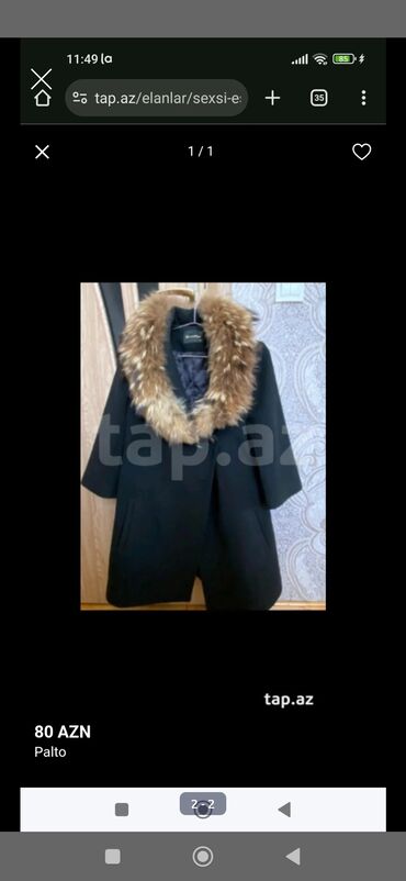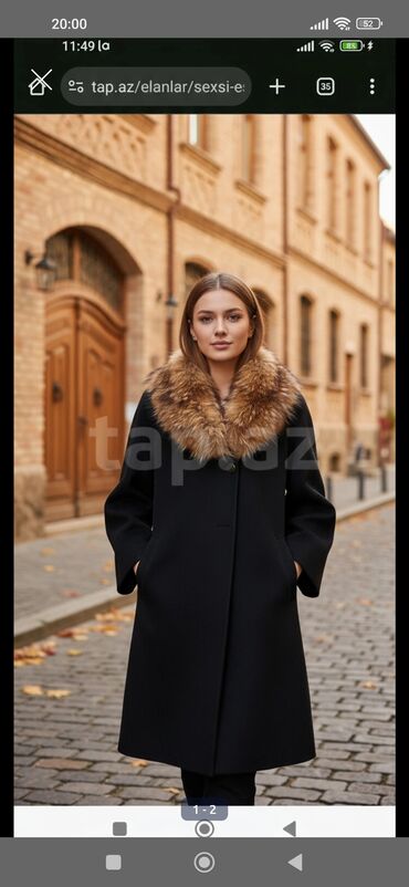 Razmer-42 Qadın palto – EURO brend - Rəng: qara - Model: düyməli, klassik kəsim - Yaxa: iri, çıxarıla bilən görünüşlü süni xəz yaxalıq (boz-qara tonlarda) - Astarlama: parlaq qara astar - Uzunluq: ...
