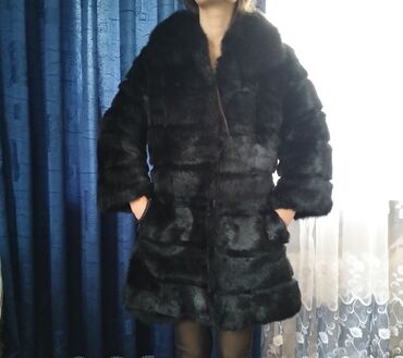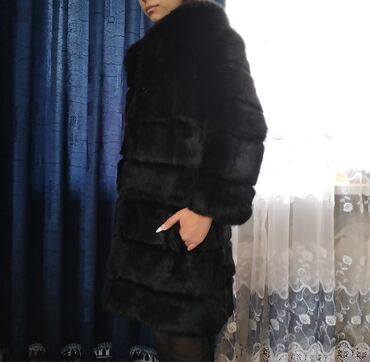 Bej rəngli qısa xəz pencək - Material: yumşaq, sıx tüklü açıq-bej xəz (vizual olaraq mink tipli toxuma) - Dizayn: qısa uzunluq, üçdörddəbir qol, hündür stend-yaxa - Bağlanma: ön hissədə örtülü, sı...