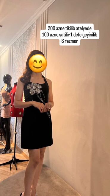 - Qiymət: 100 AZN (üstündə qeyd: atelyedə 200 AZN-ə tikilib, 1 dəfə geyinilib)