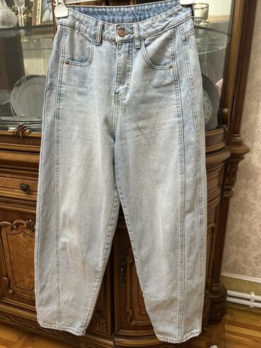 Mavi rəngli, açıq tonlarda klassik dizayna malik cins şalvar. Yüksək bel kəsimi, beliklər (kəmər üçün ilgəklər) və düymə–fermuar bağlanışı var. Ön hissədə üç, arxa hissədə iki olmaqla toplam 5 cibl...