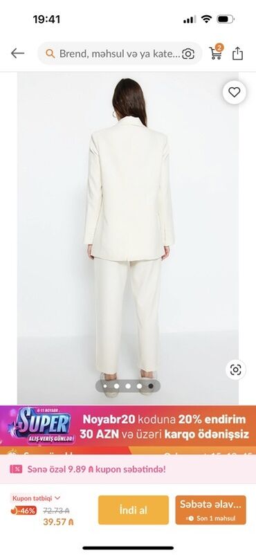 Dəst trendyoldan sifariş edilib, cəmi 1 dəfə xəstəxana çıxışına geyilib. 36 ölçüdür, ideal vəziyyətdədir. Sumqayıtdadır.