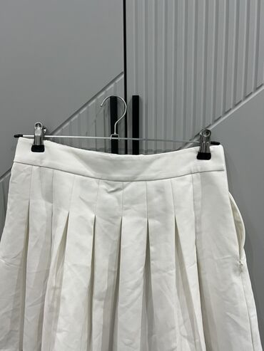 Ağ rəngli qısa ətək - Model: Plisəli mini ətək - Rəng: Təmiz ağ - Dizayn: Ön hissədə qatlar, yan tərəfdə gizli fermuar və düyməli qapanma - Kəmər hissəsi: Enli bel kəməri, kəmərkeçirənlər mövcuddur...