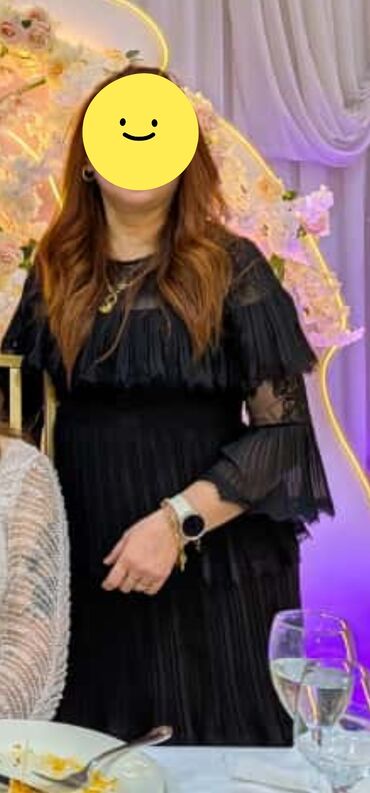 klassik qara, pilləli ətək hissəsi, büzgülü plisse detalları. Ziiyafət, toy, nişan, tədbir və axşam gəzintiləri üçün uyğundu. 42-44 ölçu. 2-3 dəfə geyinilib. baha alınıb. endirim mümkündü.