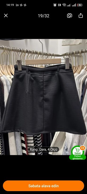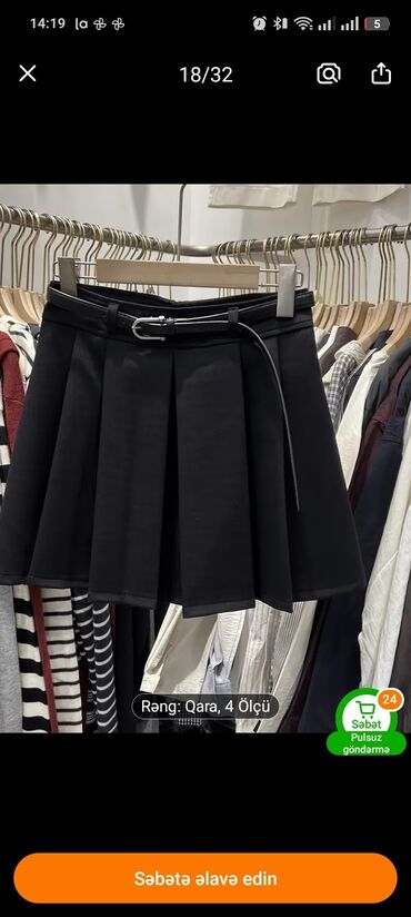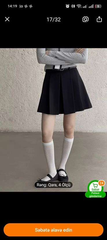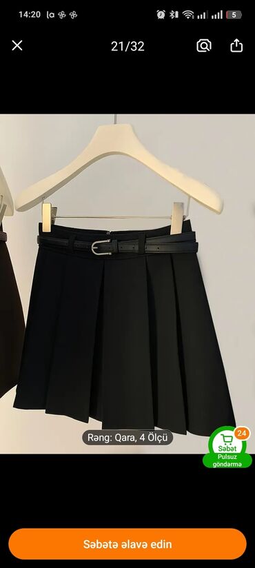 Qara rəngli, nazik ağ şaquli cizgili pliseli ətək. 1 dəfə geyinilib