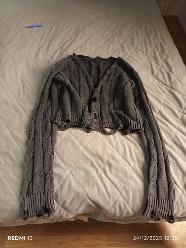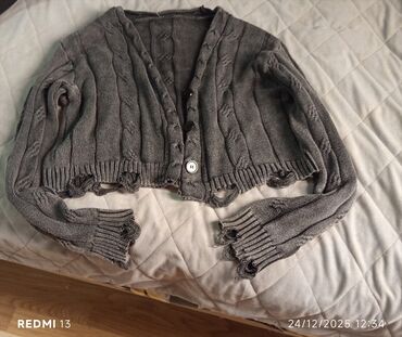 Boz rəngli qadın kardiqanı - Açıq önlü, düyməsiz model - Yumşaq trikotaj parça - Hər iki tərəfdə funksional cib - Qollar boyunca tüklü/saçaqlı dekorativ zolaqlar - Alt hissədə və ətəklərdə gümüşü ...