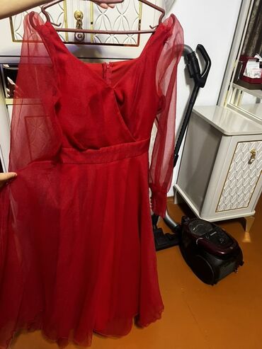 Qırmızı şifon don - Rəng: parlaq qırmızı - Parça: ikiqat qatlı yüngül