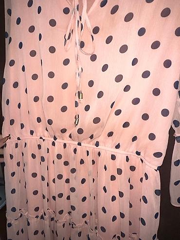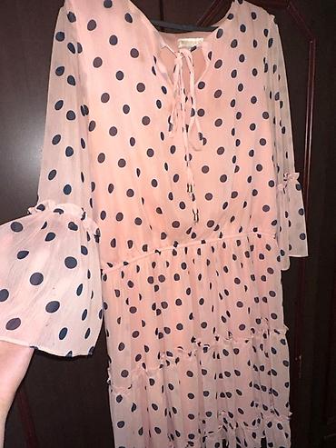 Pudra-çəhrayı rəngdə, tünd mavi xallı şifon don
