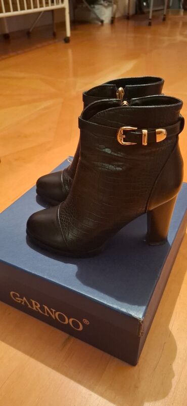 - Dizayn: yumru burun, yuxarı hissədə qızılı tokalı dekorativ kəmər