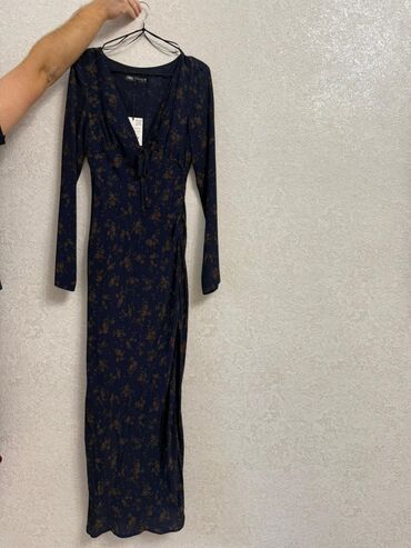 ZARA qadın paltarı - Model: uzun, pliseli ətək hissəli paltar - Rəng: tünd qəhvəyi - Parça: incə haşiyəli/trikotaj tipli, elastik - Yaxa: boğaz (turtleneck) - Qol: uzun - Siluet: beldən büzgülü, a...