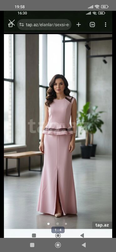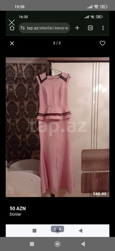 Pudra-çəhrayı rəngdə qadın ziyafət geyimi (don).