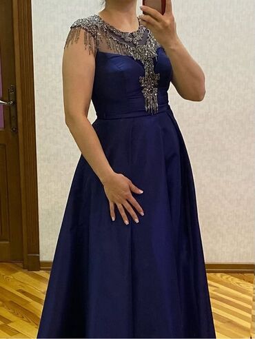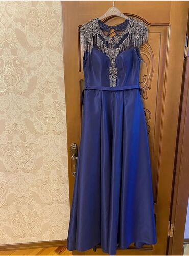 Zərif gecə libası - Rəng: dərin lacivərd - Model: A-kesim, uzun
