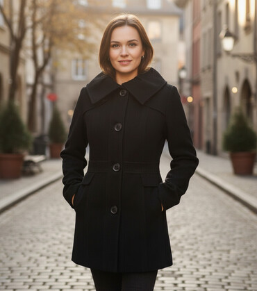 Qadınlar üçün qara rəngli palto. - Klassik A-kəsim siluet, ətək