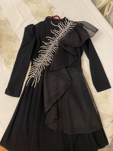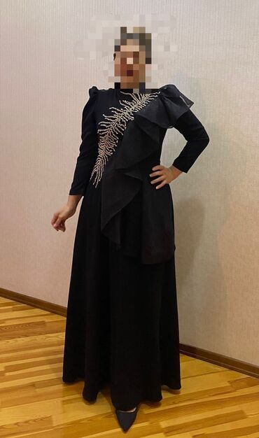 Qara rəngli uzun ziyafət geyimi