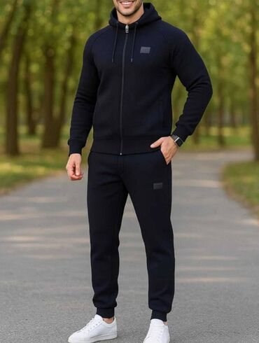 BOSS brendli kişi idman dəsti – göy rəngdə. - Material: plaşovoy (suya dayanıqlı üst qat), içi məxməri astarlı. - Komplekt: kapüşonlu zapinka ilə gödəkcə və elastik bel rezinli şalvar. - Gödəkcə: ...