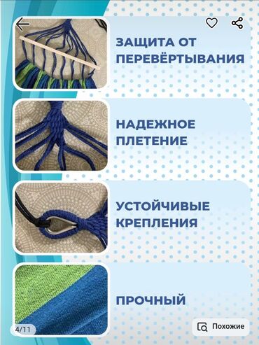 Bu, taxta çubuqları olan bir növ hörülmüş tor hamakdır. Hamak rahatlamaq üçün nəzərdə tutulmuşdur və evdə və ya açıq havada istifadə edilə bilər. Tor dizaynı dərili rəngli ipliklərdən hazırlanmışdı...