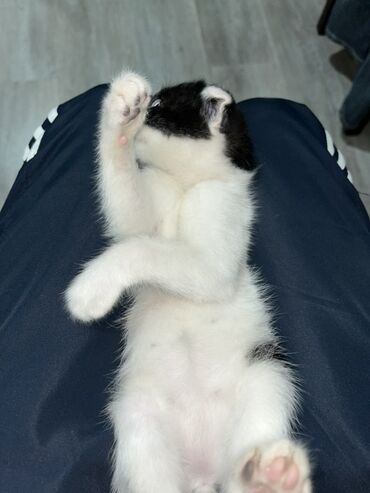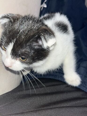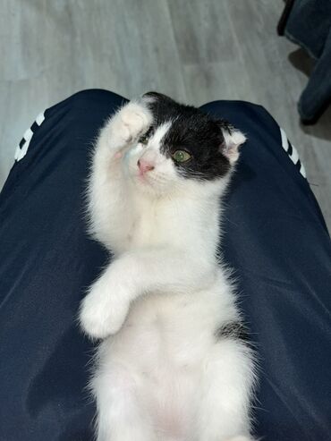 Pulsuz yaxşi ələrə Qara-ağ rəngli, bükük qulaqlı balaca pişik balası