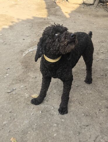 Qara rəngli, qıvrım tüklü kiçik/orta ölçülü it
