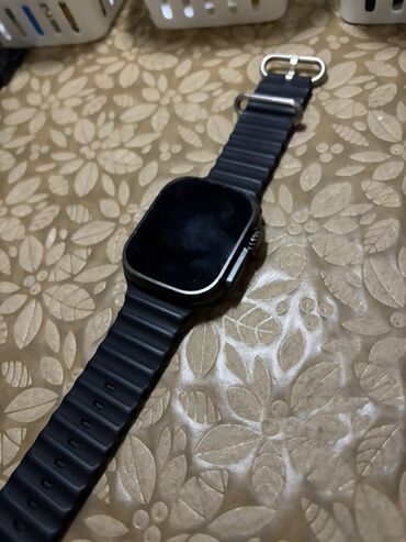 Ağıllı saat – böyük kvadrat ekranlı, qara rəngli korpus və dalğalı teksturlu, silikon qara kəmər.