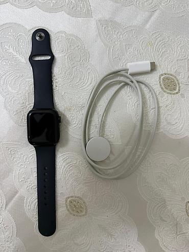 Apple Watch 8 – qara rəngli silikon biləklikli, kvadrat ekranlı model. Təzə kimidir. Pil 100% Real alıcıya endirim olunacaq