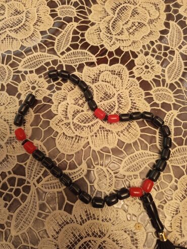 - Rəng: Qara muncuqlar və vurğu üçün qırmızı muncuqlar