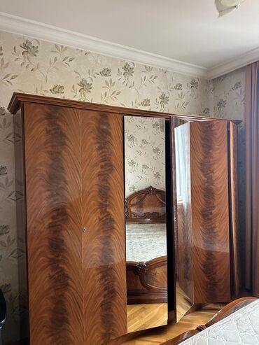 Yataq otağı dəsti – 550₼ Ünvan: Sulutəpə Matras var Dəst tərkibi: - Iki nəfərlik çarpayı (matrasla) - 4 qapılı qarderob: orta hissədə güzgülü qapılar, aşağıda 2 geniş çekmece; yan qapılarda dekora...
