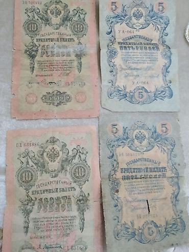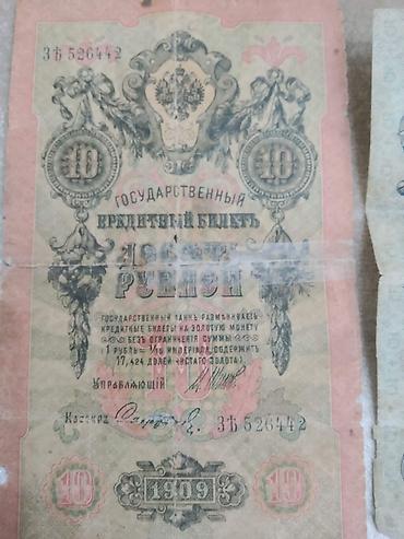 - 10 rubl nominalı banknotlar (bir neçəsi). Üz hissəsində imperiya gerbi, “Государственный Кредитный Билет 10 Рублей” mətni, dekorativ çələnglər və “1909” ili göstərilir. Nümunələrdən birinin seriyası: ЗБ 526442; digəri: СУ 631886.