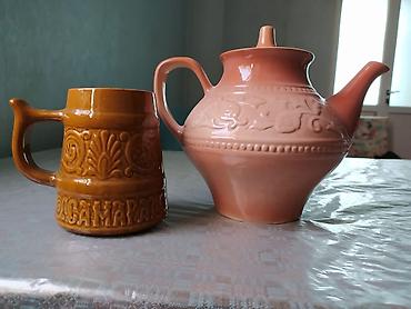 - Kruzka: qəhvəyi keramika, relyef dekorlu, qalın divarlı, iri qulplu
