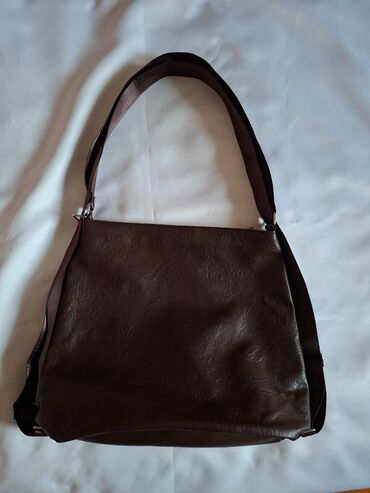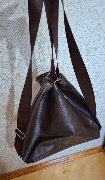 Qadın əl çantası – qəhvəyi rəngdə, süni dəri materialdan. Uzun, ikiqat çiyin qayışları sayəsində rahat daşınır. Minimalist, düz kəsimli dizayn gündəlik istifadə və ofis üçün uyğundur. Detallar: - ...