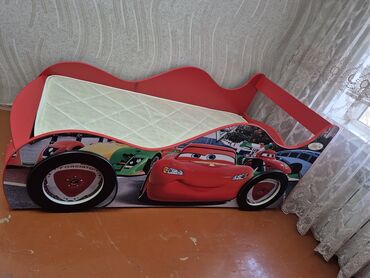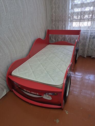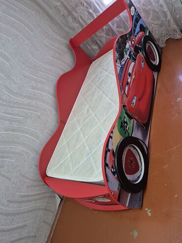 Uşaq çarpayısı – yarış maşını dizaynı - Parlaq qırmızı-sarı “race car” üslubunda korpus, yan panellərdə 8 nömrəsi və dama-şahmat zolaqları - Realistik təkər dekorları və aerodinamik forma - Aşağı ...