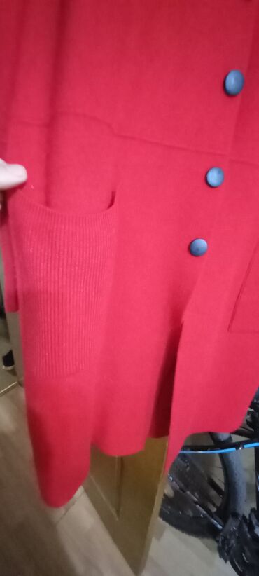 Detallar fotolarda aydın görünür: düymələrin mat tünd rəngi qırmızıya kontrast verir, ciblərin ribli trikotaj işləməsi kardiqana tekstura qatır. Rahat, funksional və minimal dizaynlı.