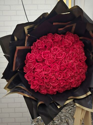 Məhsul: Zərif dekorativ güllərdən hazırlanmış buketlər - Material: Parlaq effektli dekorativ/qayçılanmış süni qızılgüllər - Rənglər: Qırmızı, göy, bənövşəyi (şəkillərdəki nümunələr) - Dizayn: Sıx ...